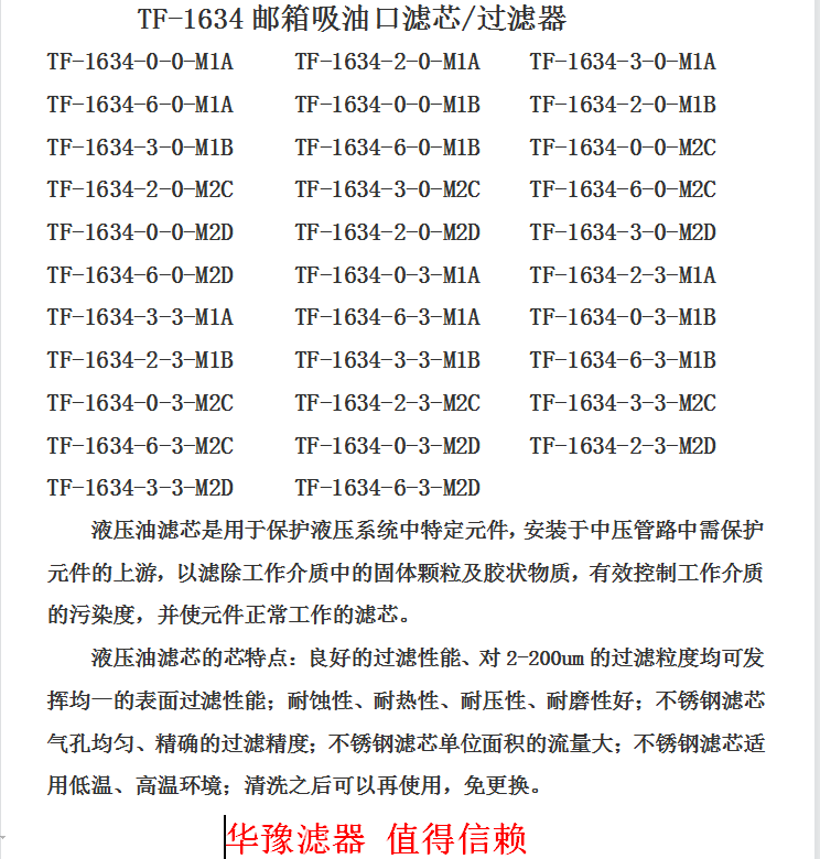 TF-1634油箱吸油口濾芯/過濾器